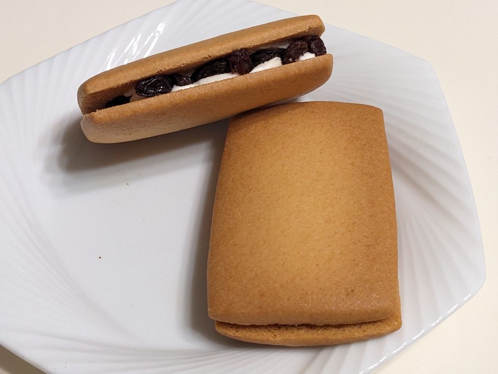 レーズンサンドです。レーズンとバタークリームがサクサクの生地に挟まれています。