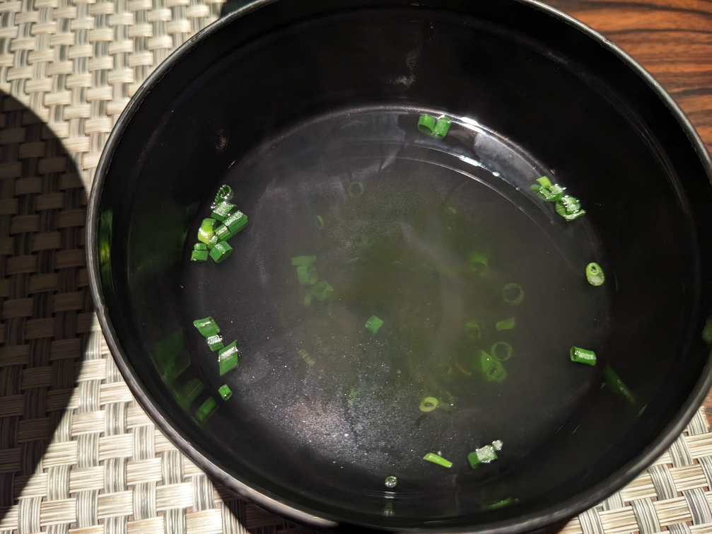 セットのお吸い物。とろろ昆布のお吸い物です。味は薄口です。