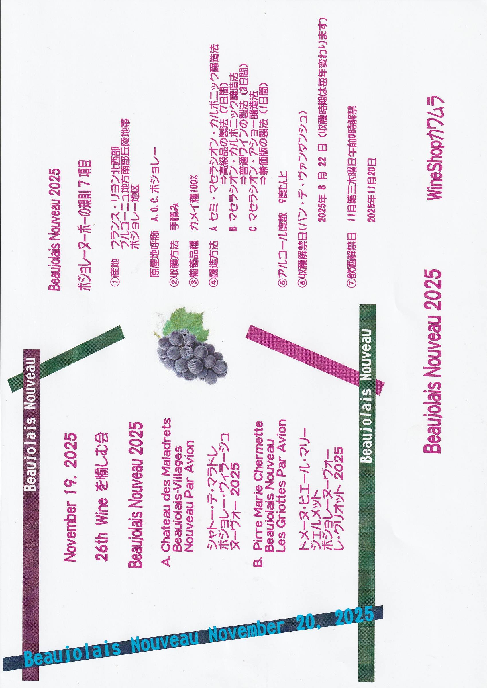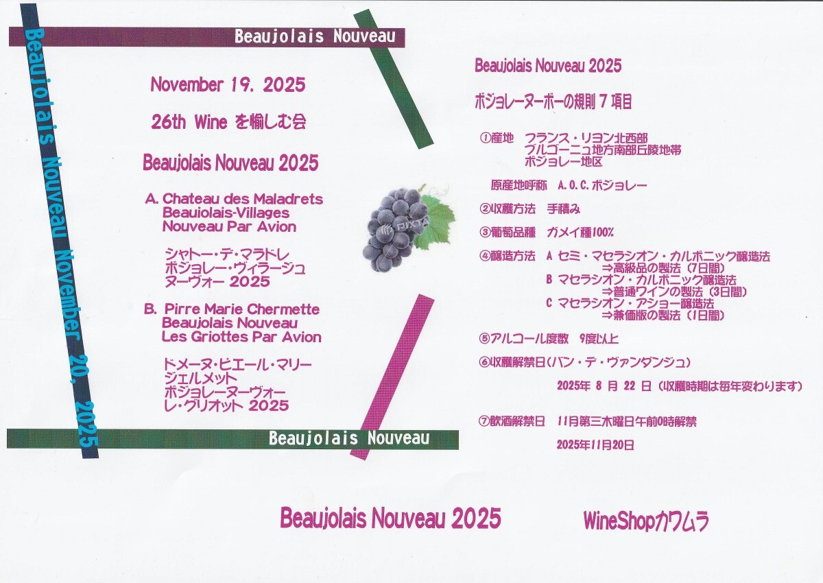 ボジョレーヌーボーを愉しむ会 11/19 にヌーボーを飲みます。