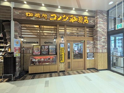 1階に名古屋発の有名喫茶チェーン店のコメダ珈琲店があります。モーニングサービスがあります。友人とお喋りするのに最適。