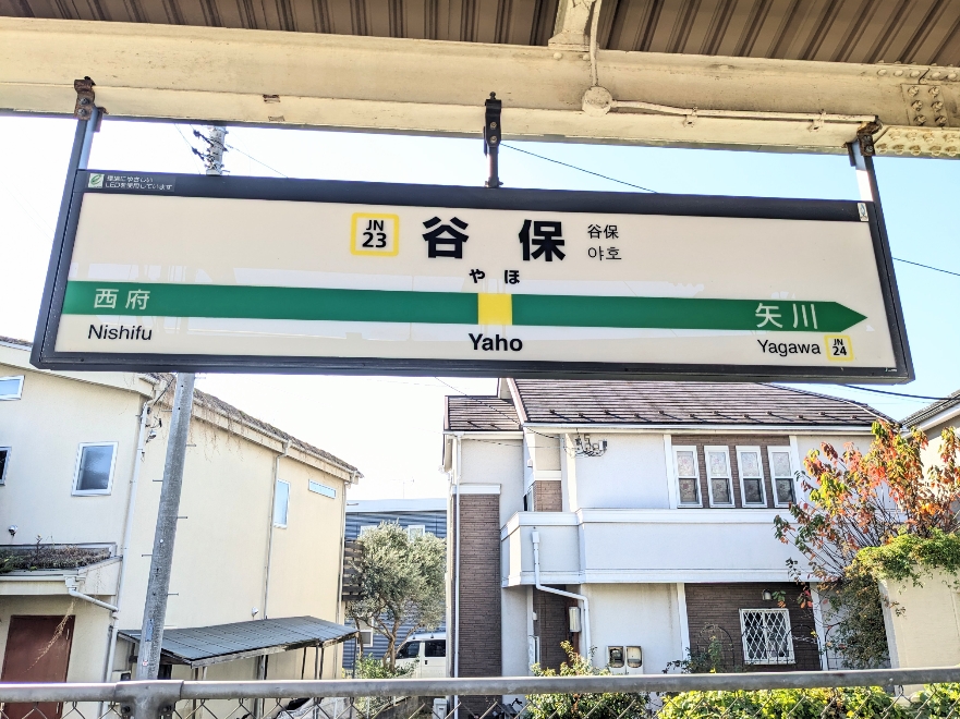 JR谷保駅の駅名標です。