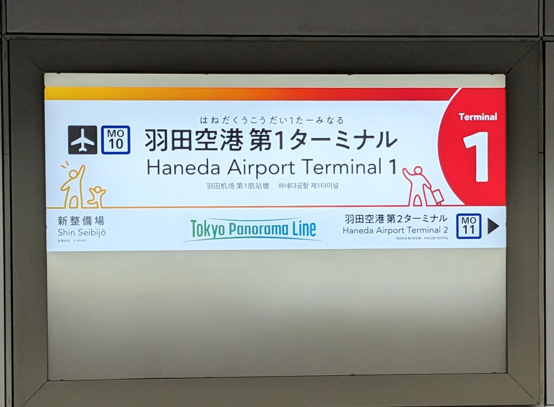 モノレールの羽田空港第1ターミナル駅、駅名標です。