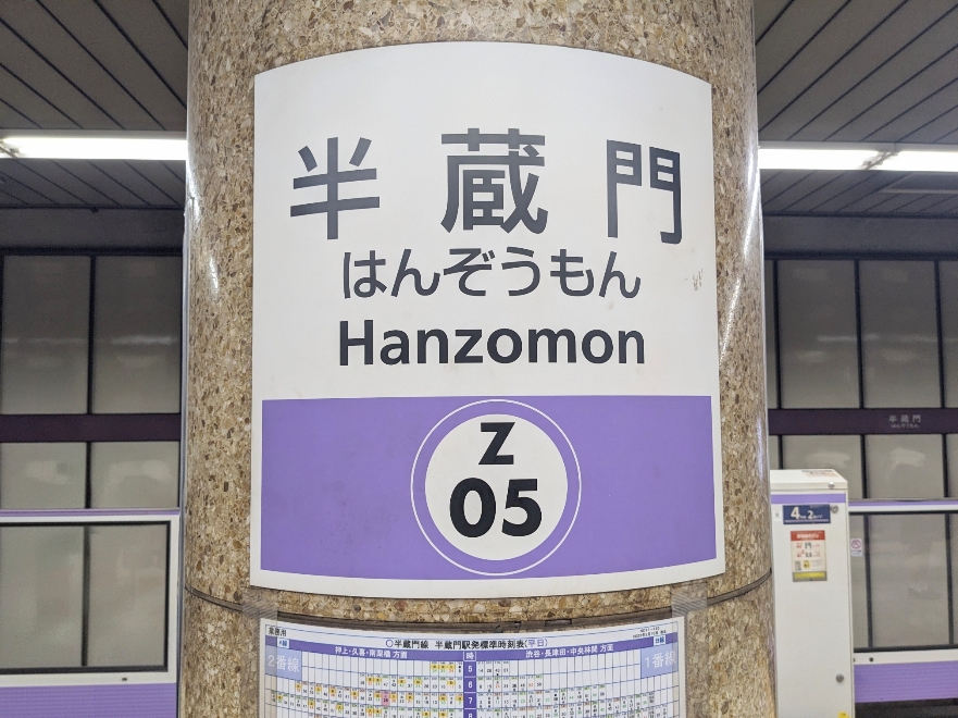 東京メトロ半蔵門線の半蔵門駅、駅名票です。