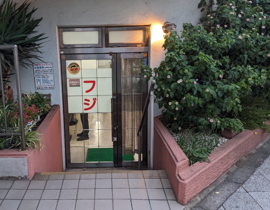 入口は建物の左側、半地下です。