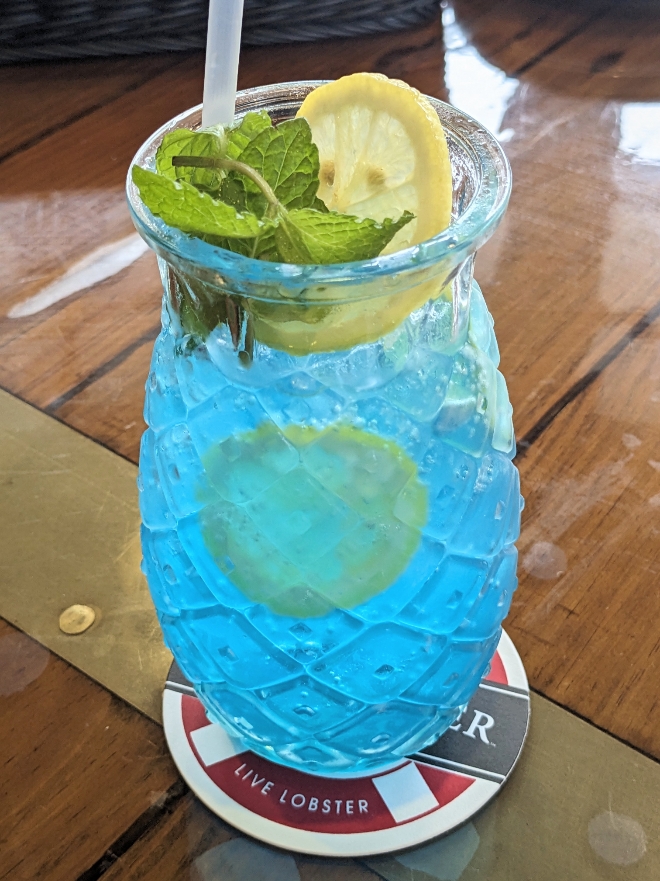 「パッションブルーレモネード」です。南国らしい味と見た目の爽やかなドリンクです。
