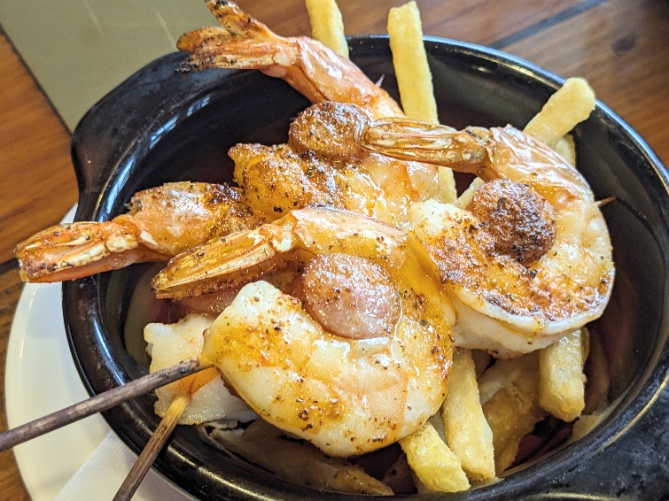 ソーセージをシュリンプで巻いた「シュリンプロール」です。スパイシーに味付けされています。