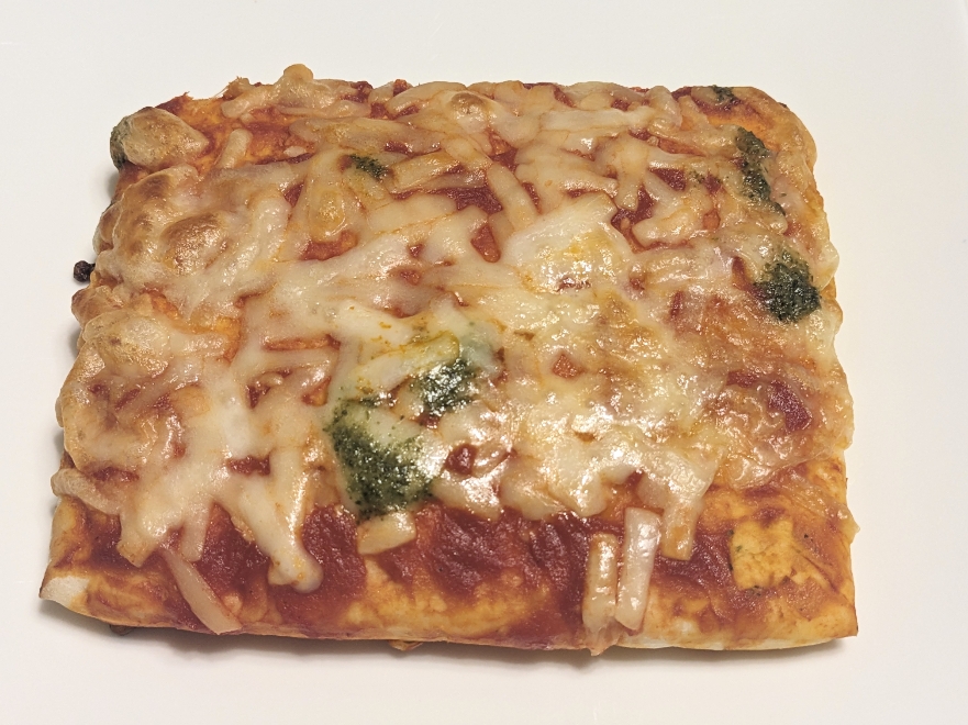 4種のチーズ(ゴルゴンゾーラ、ゴーダ、モッツァレラ、クリームチーズ)を使用した四角い冷凍ピザです。糖質も85%カットだそうです。2枚入りで¥432です。