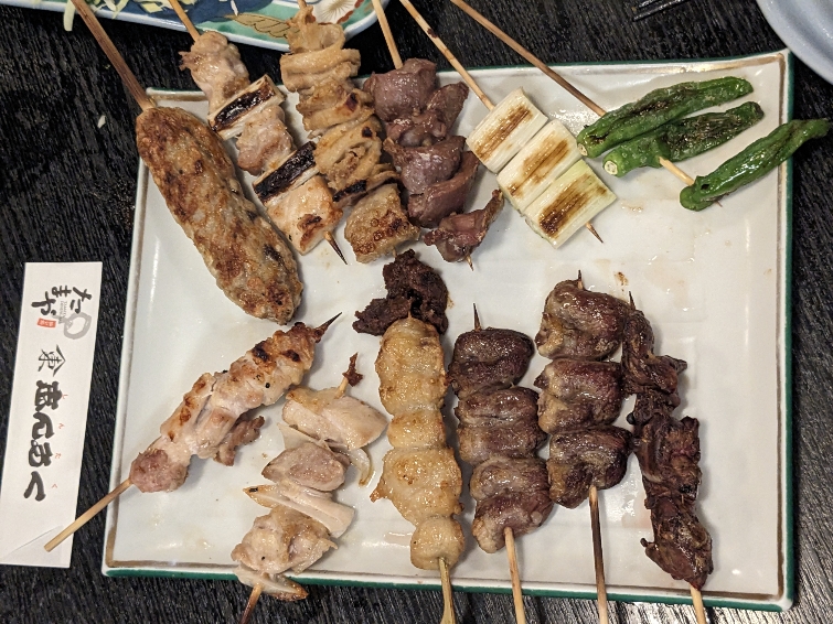 「焼き鳥盛合せ」です。塩とタレが選べます。写真は塩です。
