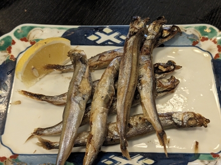 「ししゃも」です。添えてあるレモンを絞って頂くと美味しいです。