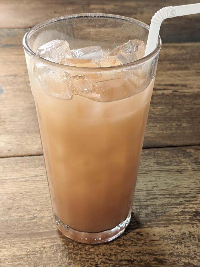 フルーツジュースの「グアバジュース」です。南国の果物、グアバのジュースで、味も濃厚です。¥638。