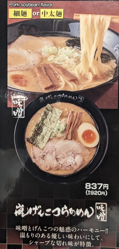 メニュー写真です。 「嵐げんこつらあめん味噌」¥920。