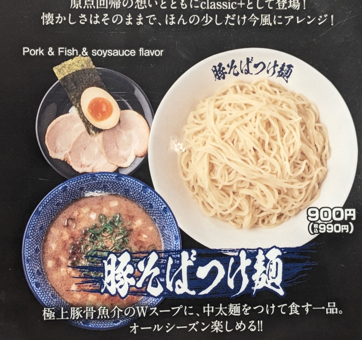 少し値段が上がりました。 「豚そばつけ麺」¥990。