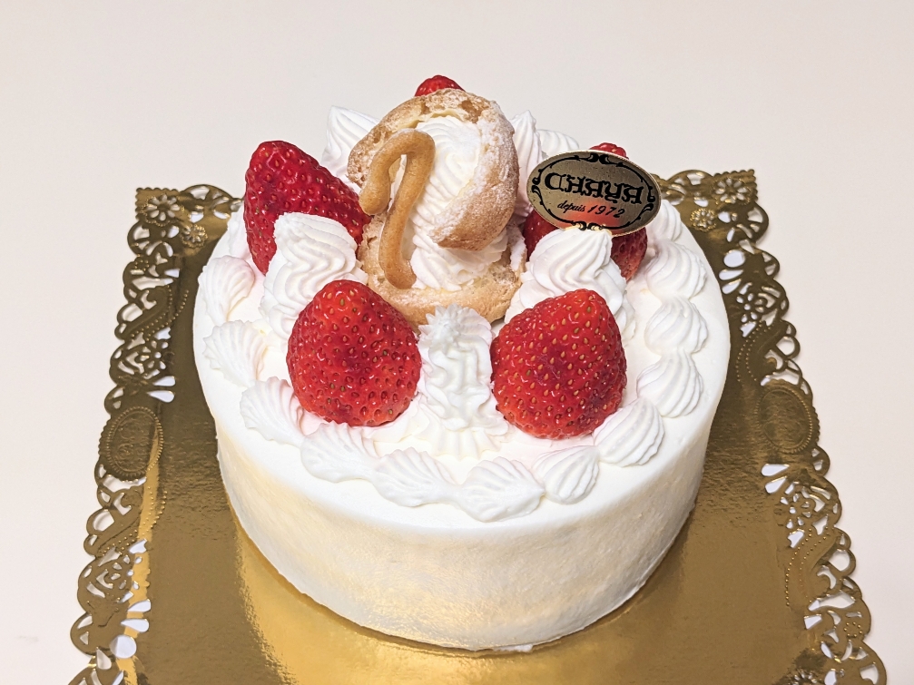 イチゴの乗ったデコレーションケーキです。上品なクリームの控え目な甘さが食べやすいです。