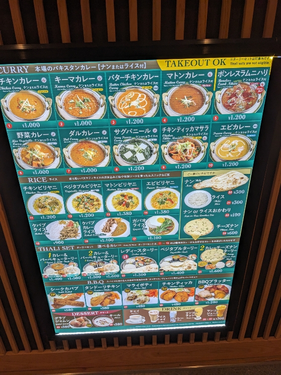 パキスタンカレーのメニュー カレー ●チキンカレー ¥1,000 ●キーマカレー ¥1,000 ●バターチキンカレー ¥1,200 ●マトンカレー ¥1,200 ●ボンレスラムニハリ ¥1,200 ●野菜カレー ¥1,000 ●ダルカレー ¥1,000 ●サグパニール ¥1,200 ●チキンティッカマサラ ¥1,200 ●エビカレー ¥1,200