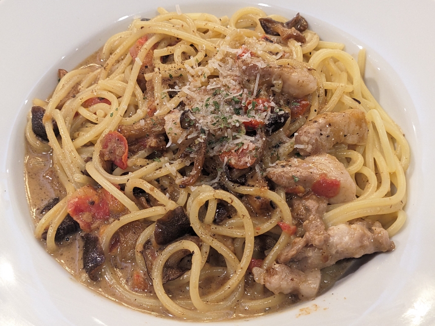 「国産豚ときのこのポルチーニクリームソース」、1,298円です。ポルチーニ茸の香りが香るクリームソースがとても美味です。