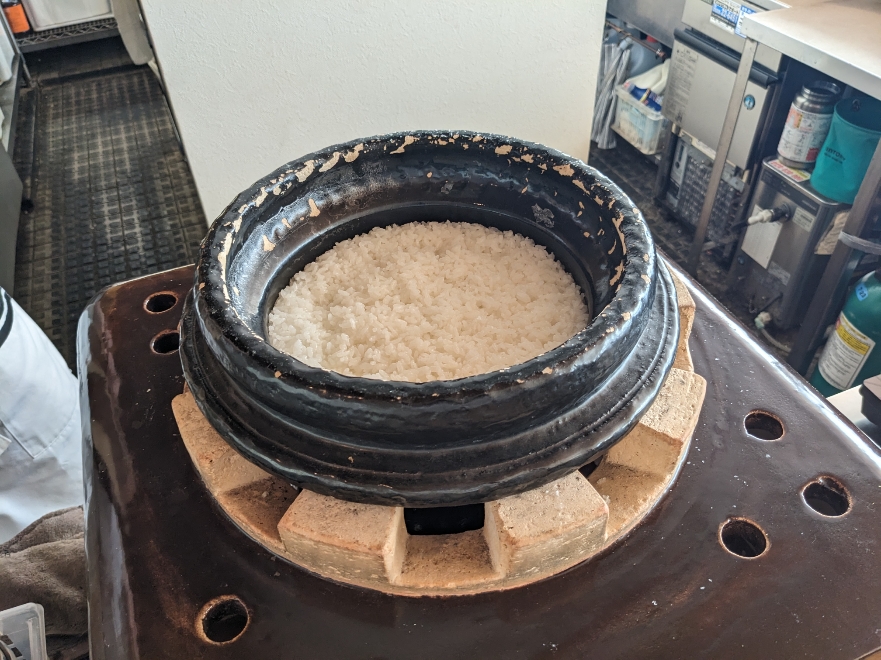 店員さんが写真用に炊き上がりの土鍋を開けて見せてくれました。