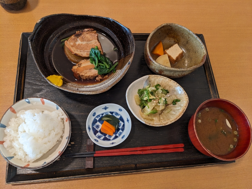 富士桜ポークの角煮定食です。地元、鳴沢村の富士桜地区のポークを使った角煮です。