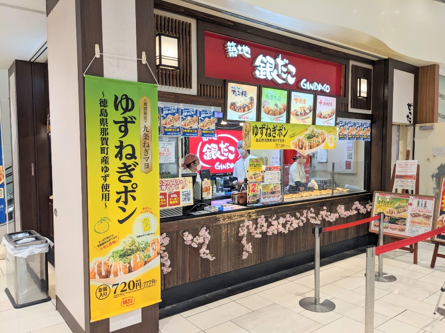 油で揚げているのでカリカリとした食感が美味しい、たこ焼きのチェーン店。 テラスモール湘南1階の湘南マルシェにあります。