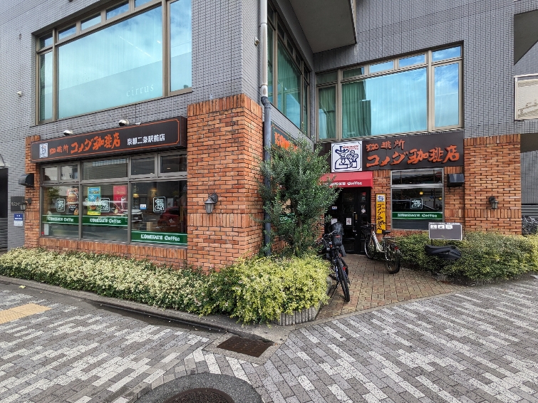 名古屋発の有名喫茶チェーン店。モーニングサービスがあります。友人とお喋りするのに最適。 場所はJR二条駅東口です。