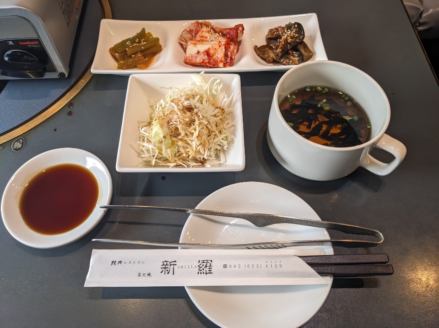 最初にスープ、サラダ、日替わりのおかずが出てきました。これにライスとカルビが来ます。