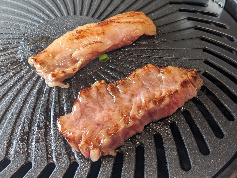 ランチの為でしょうか、テーブルの網焼きではなく、カセットコンロでの鉄板焼きですが、味はとても美味しくて、とても満足のいくものでした。 お店の向かいにある有名ラーメン店は行列ですが、こちらのお店は空いています。安くて美味しいのに何故なんでしょうか?不思議です。
