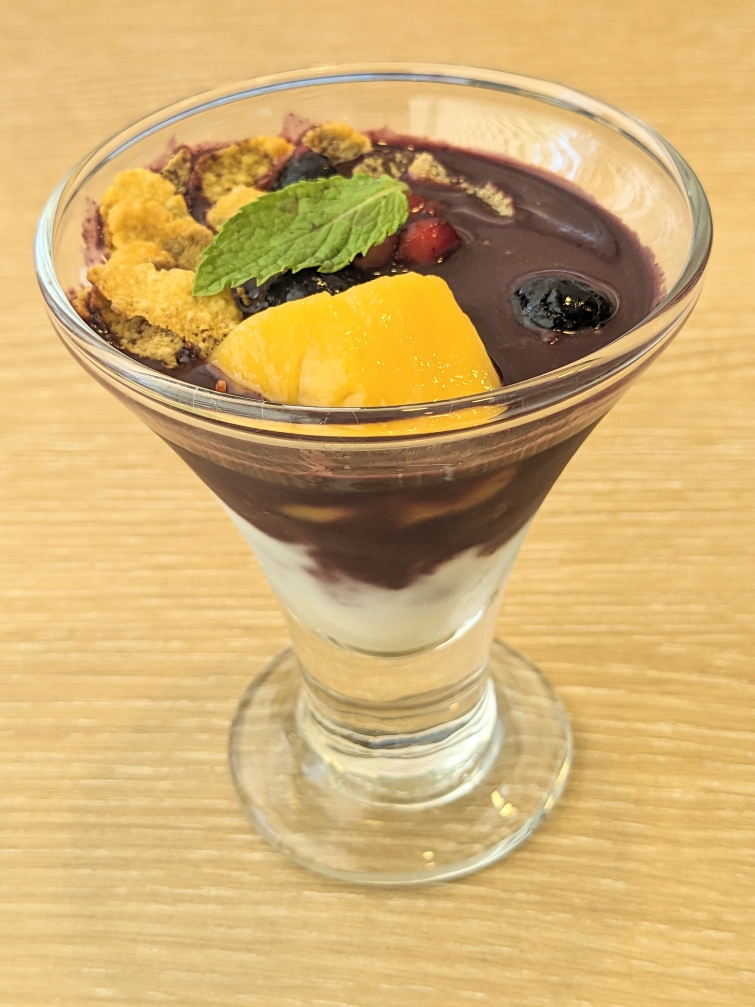 健康食として注目を集めるアサイーとヨーグルトのデザートです。甘過ぎず食べやすくてオススメです。