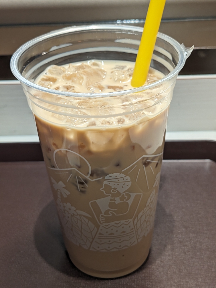 アイスカフェオレのMサイズです。270円。よくあるミルク感の強いカフェオレかなと思っていましたが、意外にコーヒー感がある大人の味付けで美味しかったです。