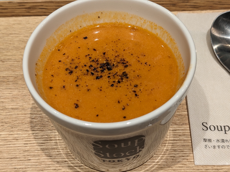 スープストックトーキョーの定番スープ、オマール海老のビスク。海老の豊かな香りが楽しめます。