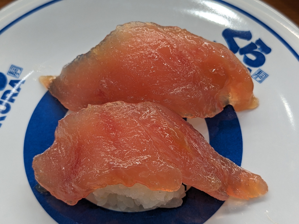 「〆さば」です。 くら寿司はシャリの量が選べるのが良いです。