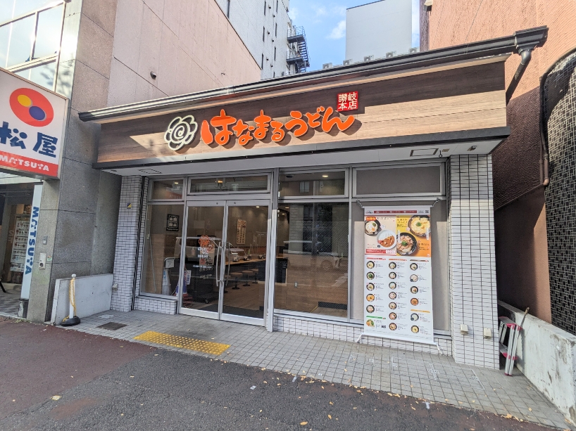 地下鉄四条駅の一番南の5番、6番出口の近くにも「はなまるうどん 四条烏丸店」があります。