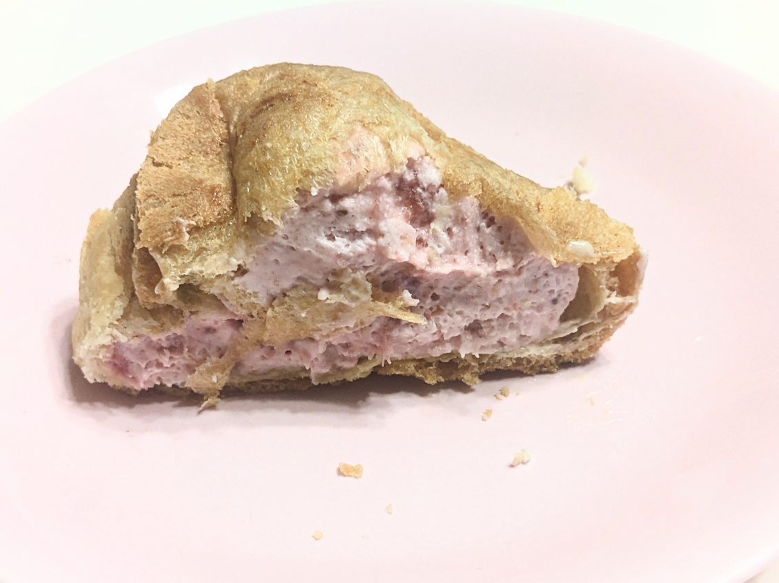 中身は甘酸っぱいストロベリークリームです。 苺の粒々も残っています。