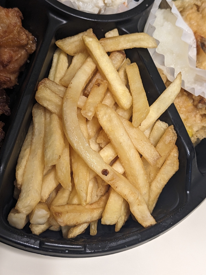 中央は4個のプチトマトとポテトサラダです。ポテトサラダは優しい味で美味しかったです。