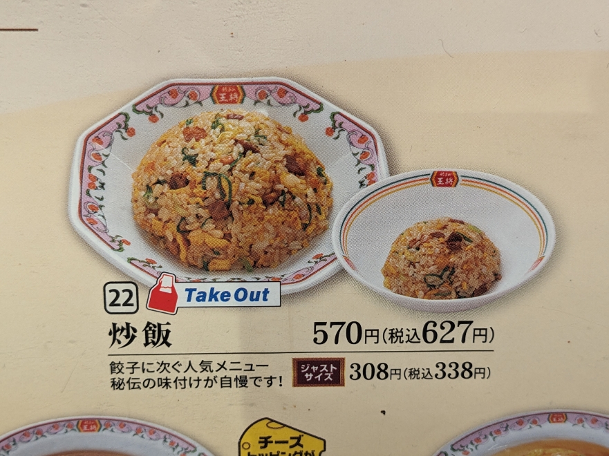 メニューです。 炒飯 ¥627