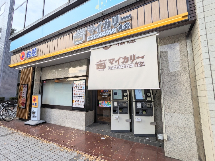 松屋との併設店です。 JR武蔵小杉駅北口の武蔵小杉駅前交差点の近くです。