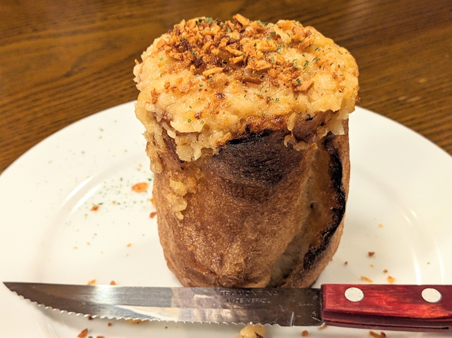 名物の四角くて、薄い生地のパイです。結構おいしい。生地が薄いので、パリパリ感があって香ばしいです。あまり、ガーリックを意識させない味でした。