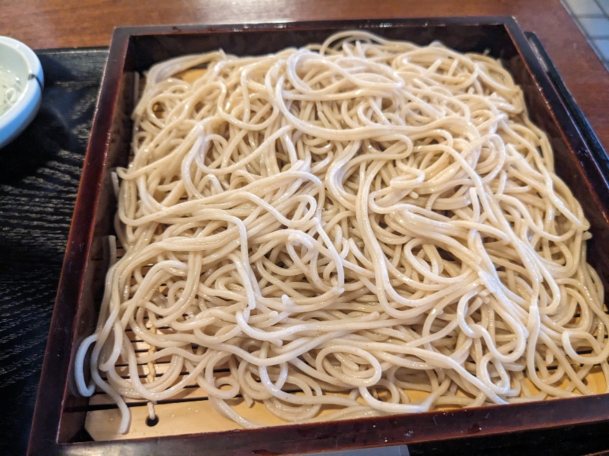 蕎麦です。今のような暑い季節には冷たい蕎麦はありがたいです。私には丁度良い量でしたが、若い人には大盛りの方が良いのかも。