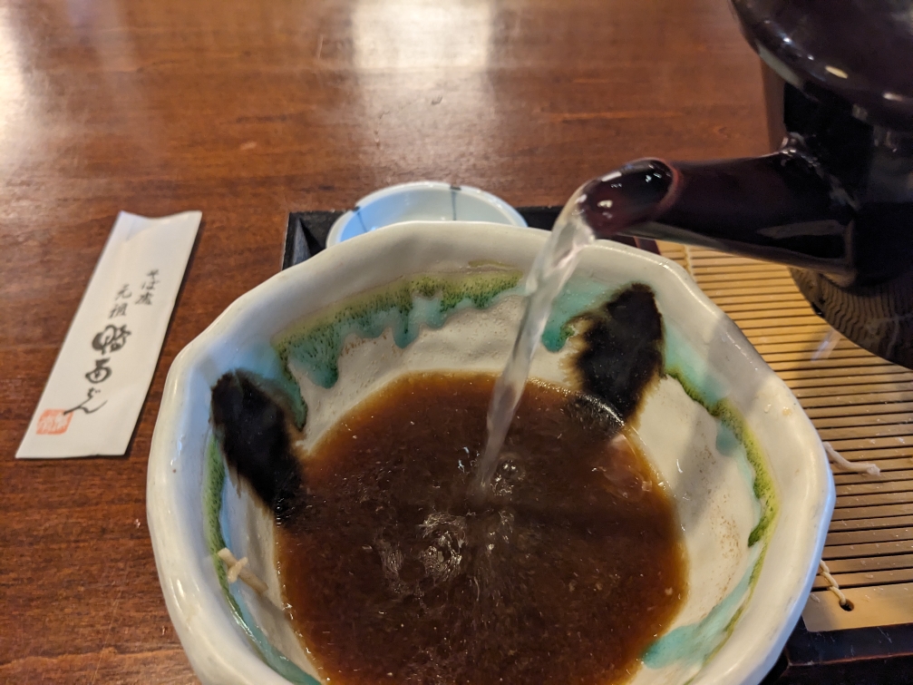 最後は蕎麦湯でつけ汁を頂きます。