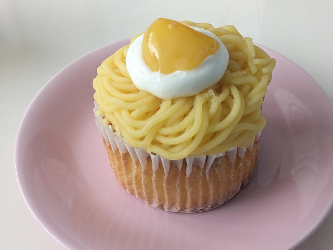 きれいな金色の衣装をまとったモンブラン。定番のケーキです。496円。