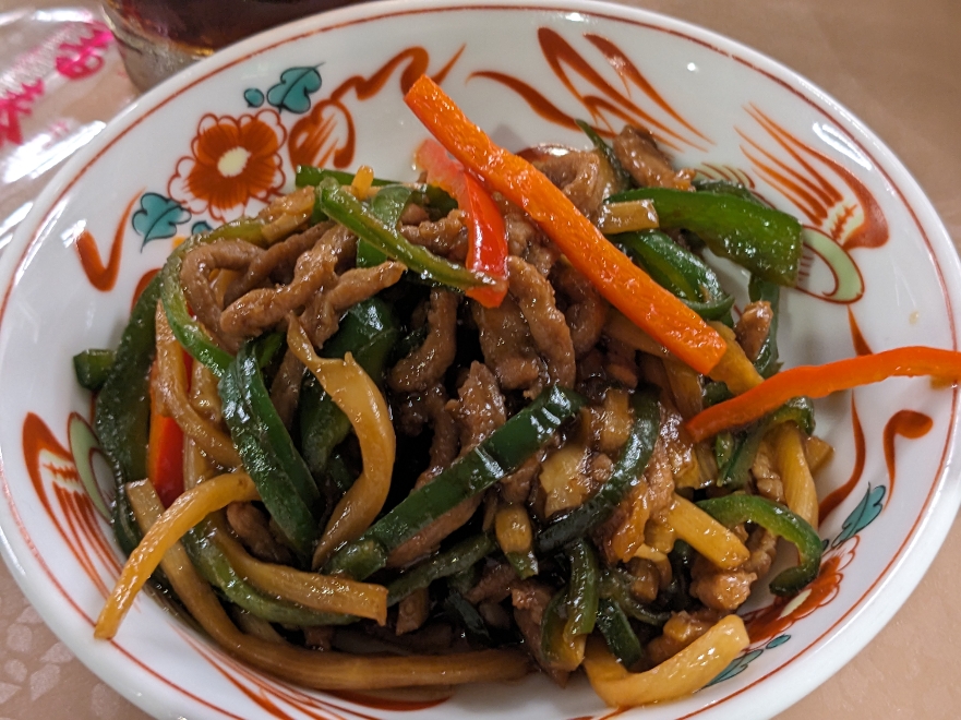 「前菜三種盛り合わせ」です。 叉焼が甘味もあって美味しいです。手前右はクラゲ、奥は野菜の甘酢漬けです。