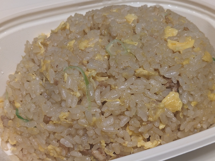 プラ容器に入ったテイクアウトのチャーハンです。家へ持ち帰って食べられます。530円。