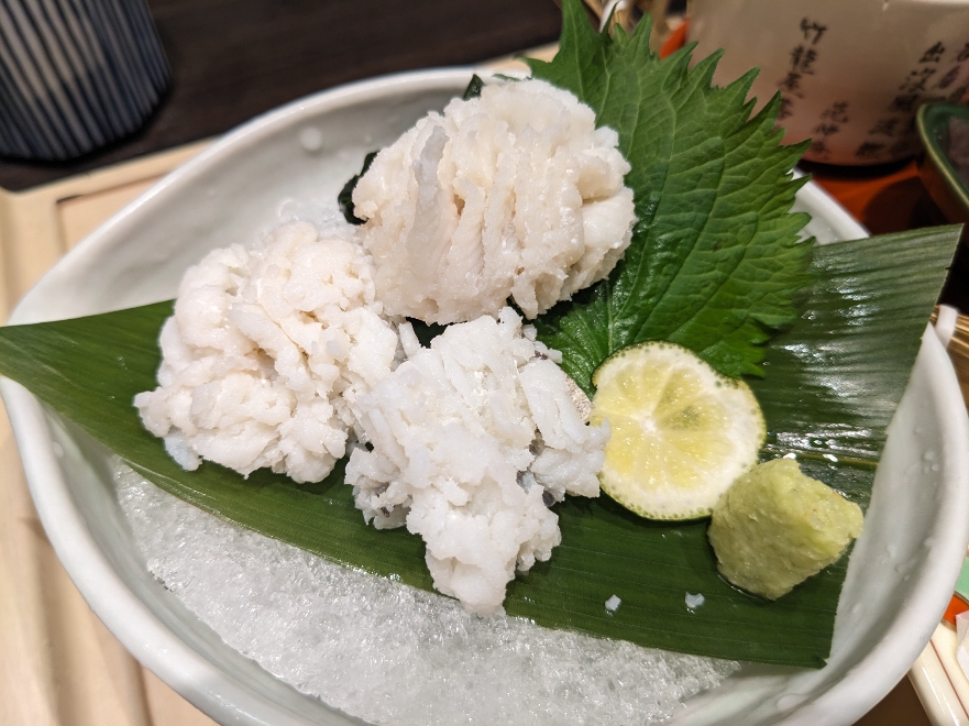 夏の天ぷらです。鱧、ズッキーニ、とうもろこしです。