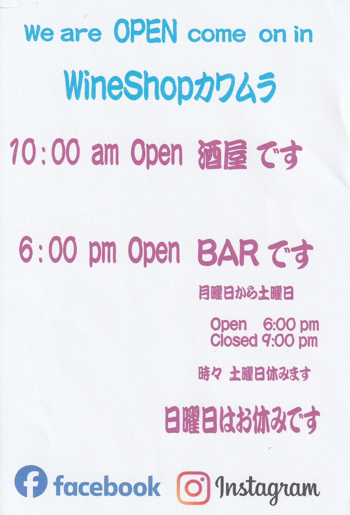 10:00 am Open 酒屋です 6:00 pm Open BAR です