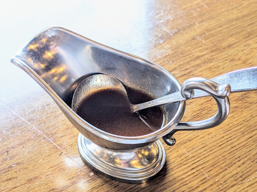 ソースはデミグラスソースを選びました。デミグラスソースはグレイビーボートで運ばれてきました。