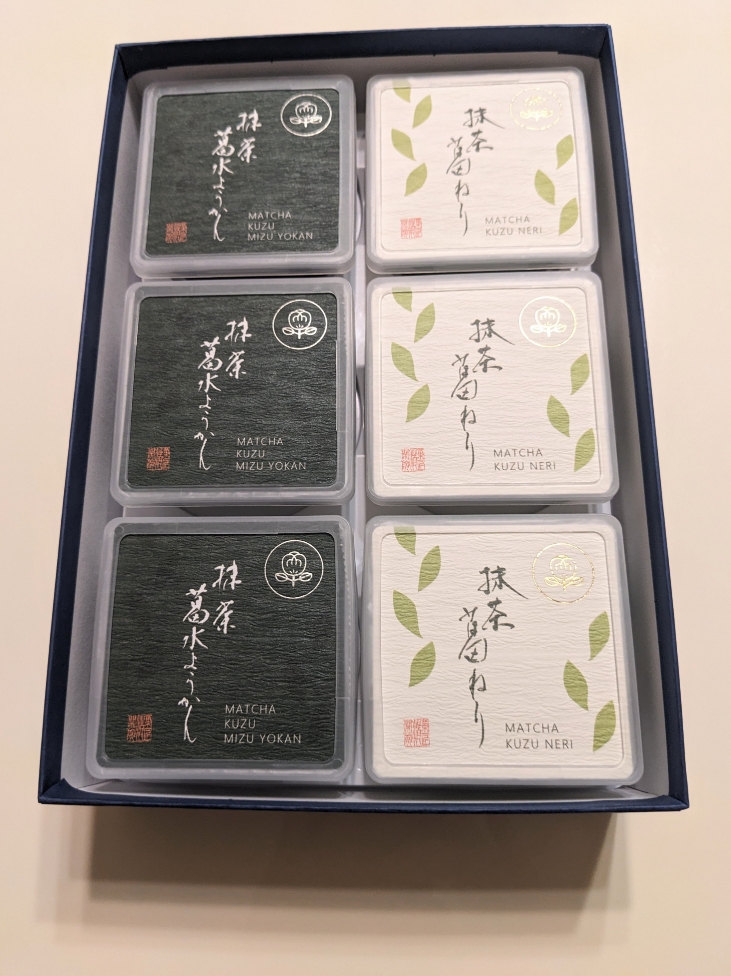 抹茶葛ねりと抹茶葛水ようかんのセットです。