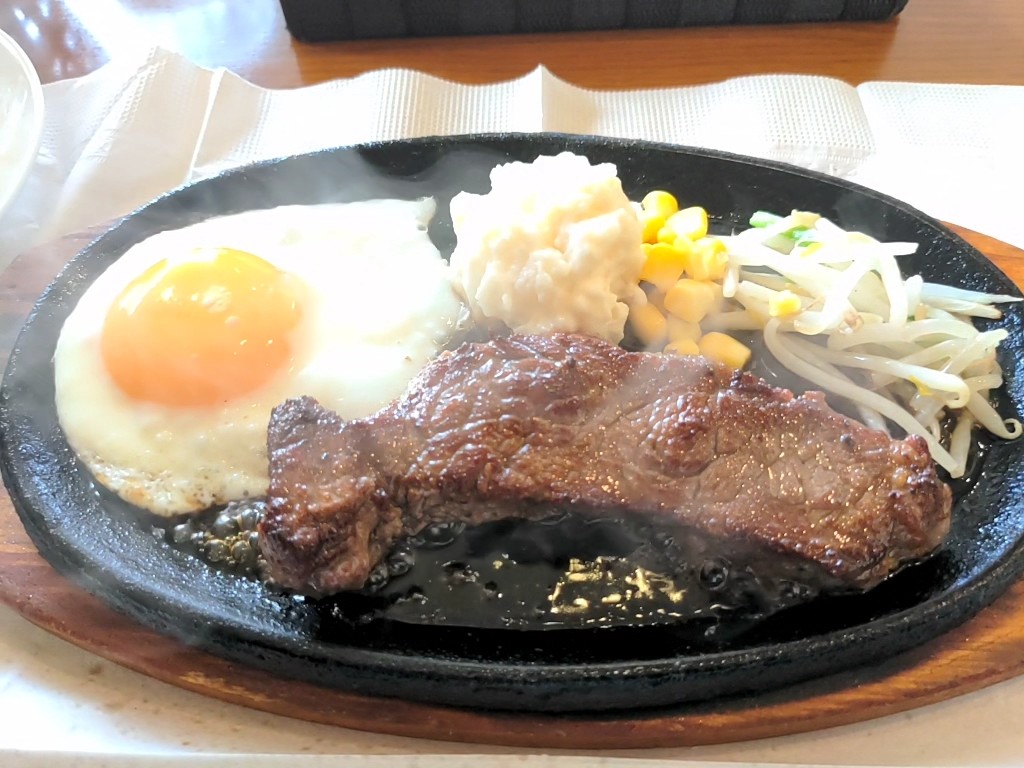 目玉焼きが付いています。お肉は歯応えがあるというか、正直少し硬かったです。