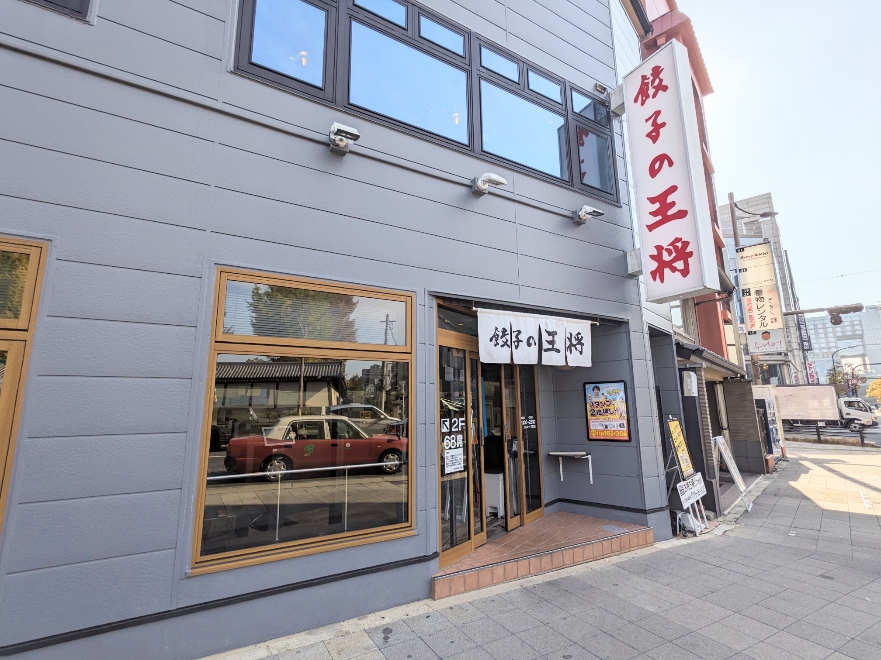 有名な餃子&中華のチェーン店です。安くて、しかもとても美味しいのが魅力。 烏丸七条交差点の少し先です。古都京都の街並みに配慮した落ち着いた色合いのお店外観です。