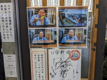 テレビ取材があった時の写真も貼られています。ドランクドラゴンの塚地さんです。