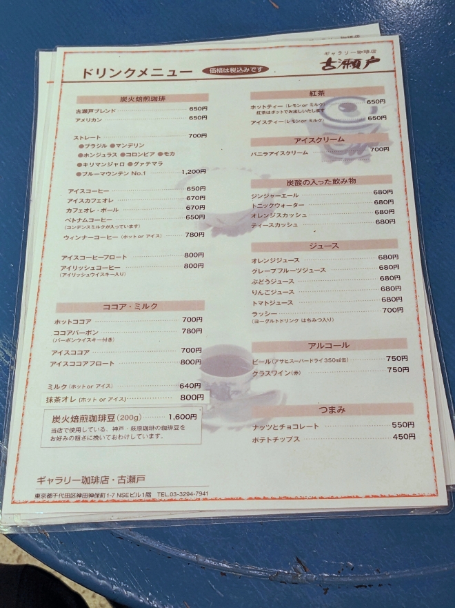 神保町駅近く、すずらん通りの一本裏にあります。サンドイッチやカレーなどの軽食もあります。