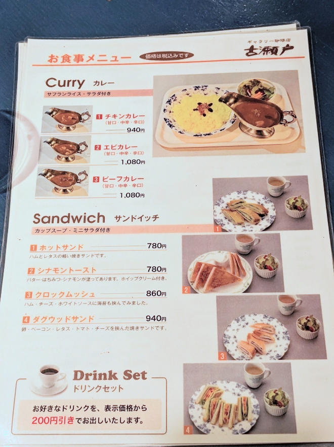 ドリンクメニュー 炭火焙煎珈琲 ●古瀬戸ブレンド 650円 ●アメリカン 650円