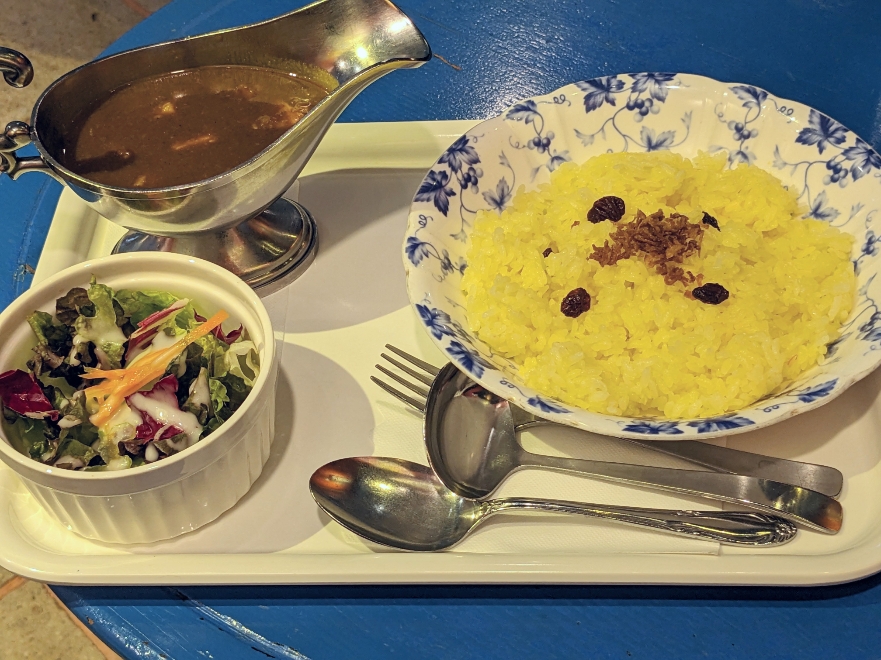 チキンカレーです。サラダもセットで付いてきます。